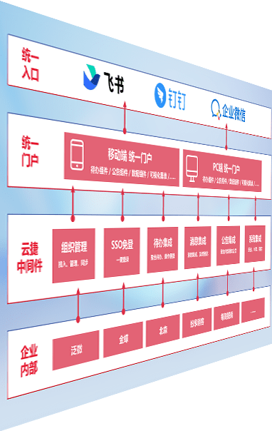 对协作平台提供支持服务,,支持企业应用与协作平台对接,,包含组织同步、、消息集成、、、、待办集成等。。。支持目前主流的协作平台:钉钉、、企微和飞书。。。